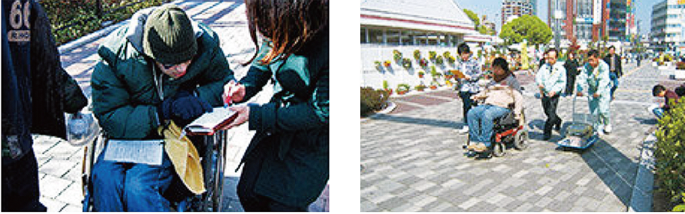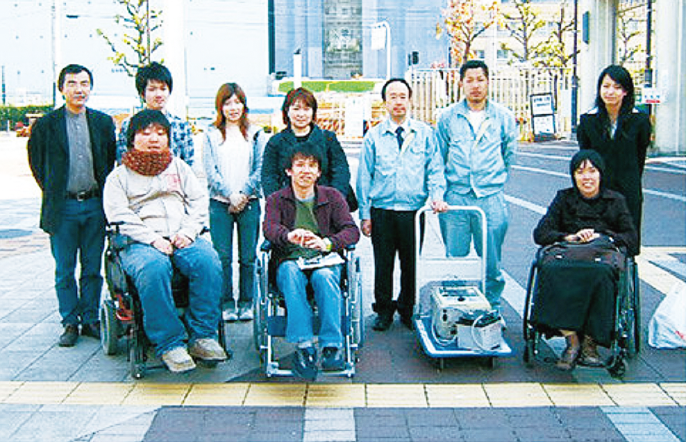 舗装材の性能試験(障がい者の方にとっての快適性等)を頚推損傷等の重度の障がいを持つ仲間たちが中心となったNPO法人「自立センター・あるる」と共同で行なっていました。