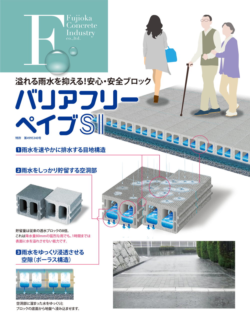 貯留量は従来の透水ブロックの8倍。