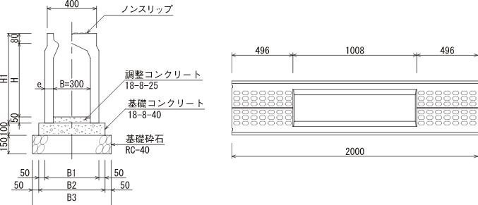 ※横断用側溝には、専用コンクリート製品を